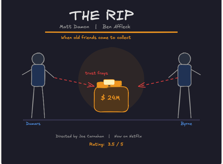 The Rip — directed by Joe Carnahan and now streaming on Netflix — understands this. It is not a complicated film. It does not need to be. Its primary asset is that chemistry, and it has the intelligence to trust it.
